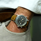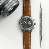 Our Crazy Horse leather straps are made to our exact specification. The straps have a more robust, padded profile and subtly tapers from lugs to buckle. The Crazy Horse collection is fitted with a sturdy, brushed buckle (with spring bar) and quick-release pushpins. The keepers are slightly wider to stay in check with the overall appeal of the strap.