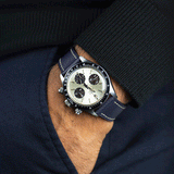 It is all about details in a well-made strap; supple leather, fine stitching, well-proportioned keepers, a slight taper and smooth edges and tip. You will not be disappointed with a strap like this, we’re sure of it. A grained calfskin leather strap offers a slightly sportier look and pairs just as easily with an elegant dress watch as it does with a vintage timepiece.