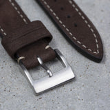 We selected Taurillon Nubuck for our nubuck straps, the very best part of a leather hide also used in high-end luxury purses and handbags. It has a luxurious feel and is of course finished to our highest standards, with light-crème stitching with ease-of-use quick-release spring bars. Available in multiple colors, we’re sure there we have the perfect match for you.