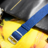 Braided nylon watch straps are commonly referred to as “perlon” straps, and they make a great addition to your selection of straps. Perlon straps look great on vintage and modern watches alike, and allow for easy changing to match the style of the day. Due to their light and airy nature, these straps are great for the summer (and they dry quick after a cooling jump in the pool).